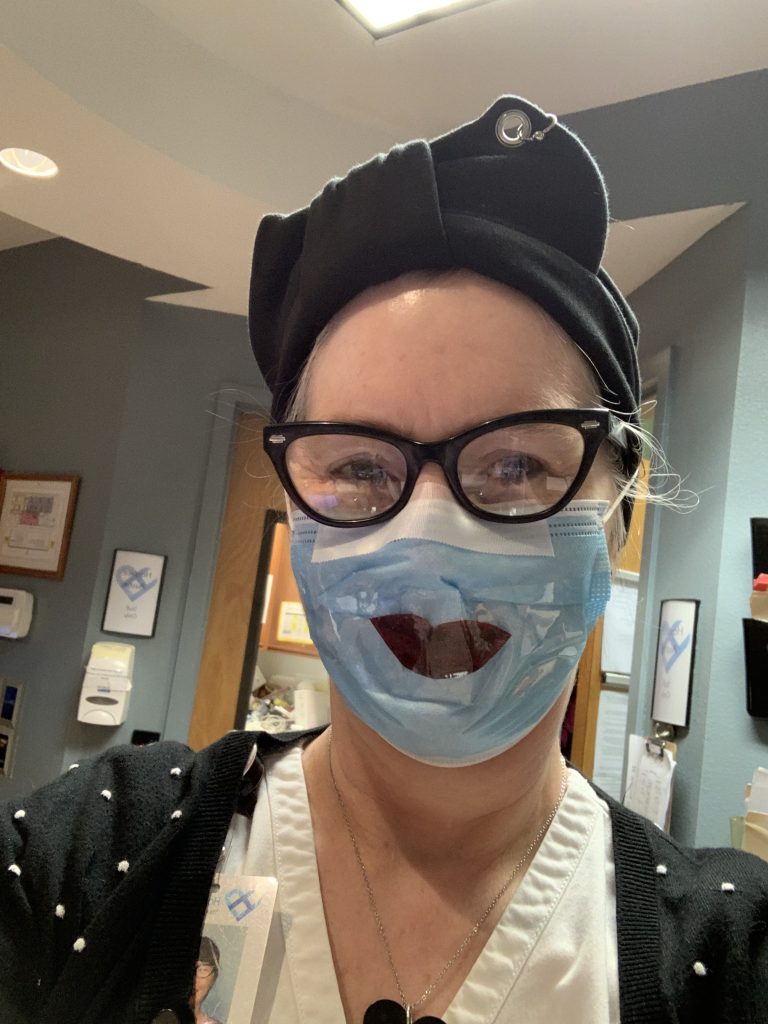 one of the things people know me for is my red lipstick. i always have my tarte fire lipstick on. well, in this day and age of face masks i had to find a way for people at work to know it was me! so i added some lips to my face mask (with mgmt approval!) i amuse people.