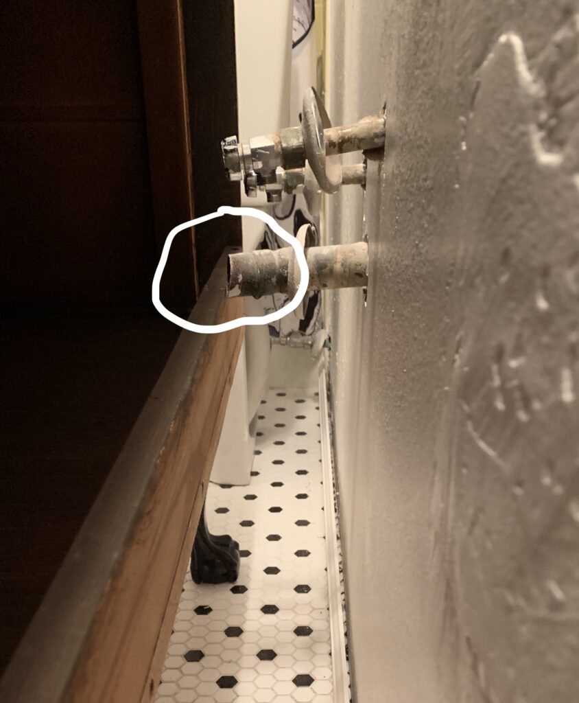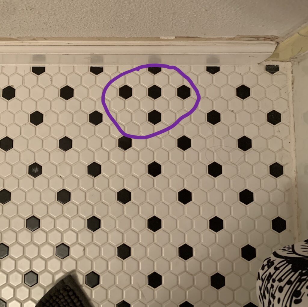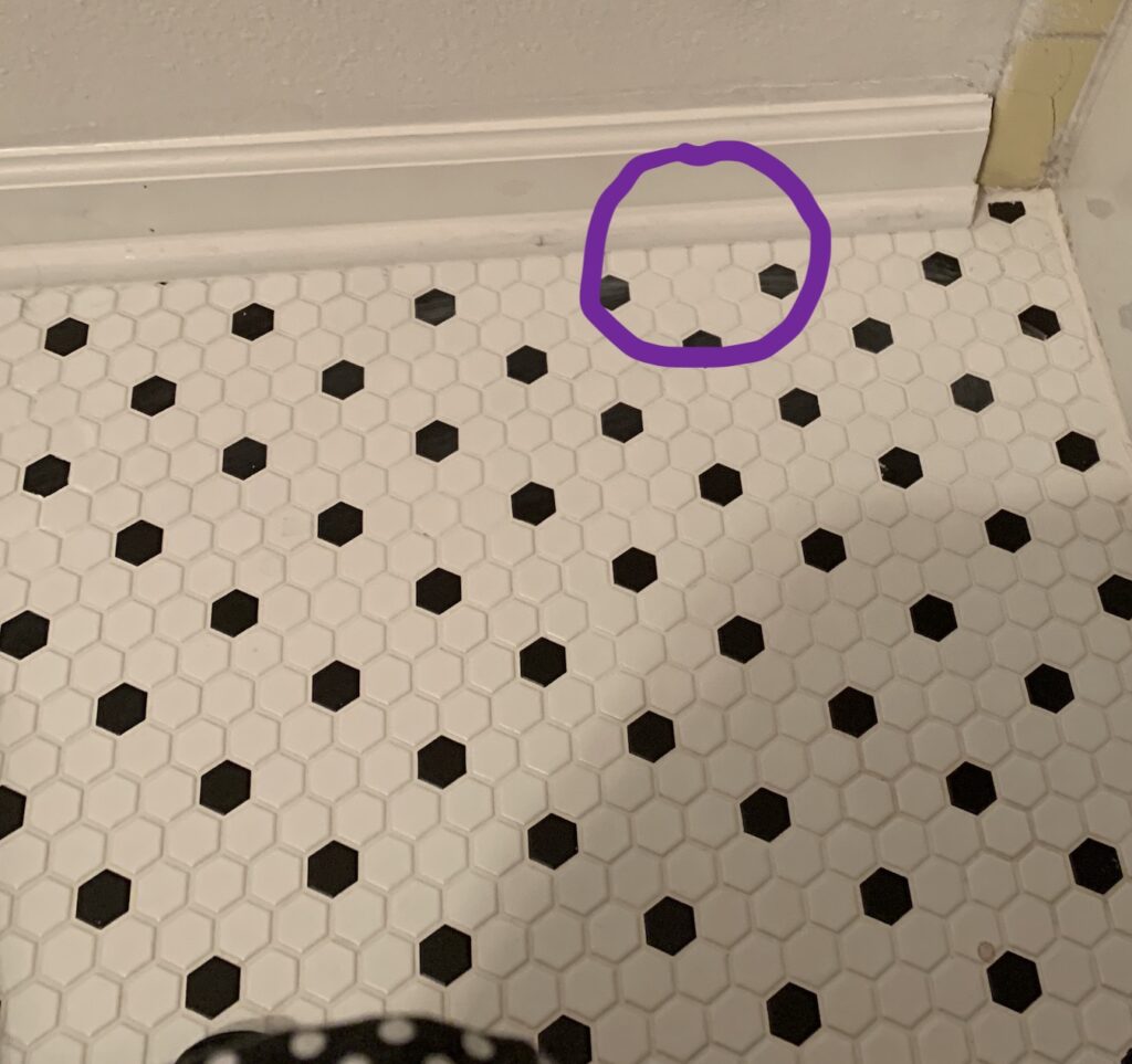 i am going to drill the hole for my sink in my vanity. i have talked to MANY people. i feel safe in the knowledge, i feel i can do it right, i rented a jigsaw at home depot (only because lowe's doesn't rent tools). plumber comes on monday to deal with the drain pipe that is a smidge too low (see picture below). mirror comes back on friday the 13th. it cost WAY more than i had planned (like that toilet i didn't really want to have to buy; though i like it lot more than my old one) and now the plumbing complications. i did stand up for myself, as i always do, and the floor is now perfect. no more random wrong tiles (see before/after photos below).