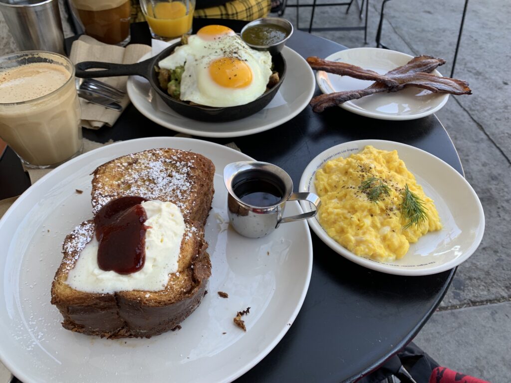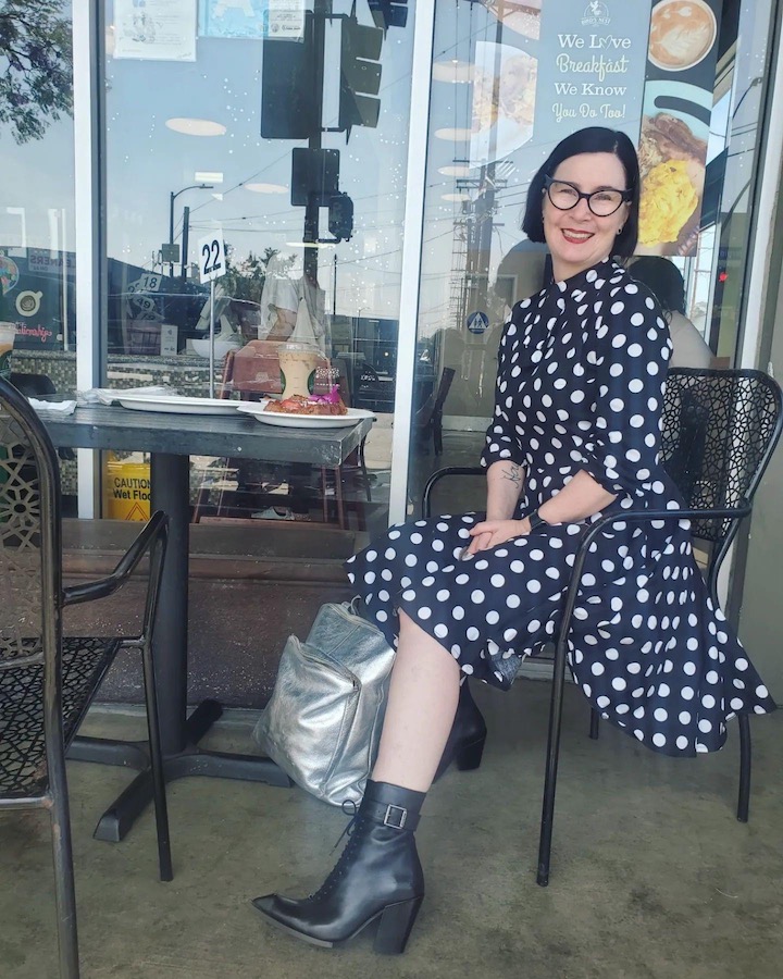 My final breakfast in LA. The coffee was horrible but the meal was good. Me in my new Cubist Cupcake Fluevogs!