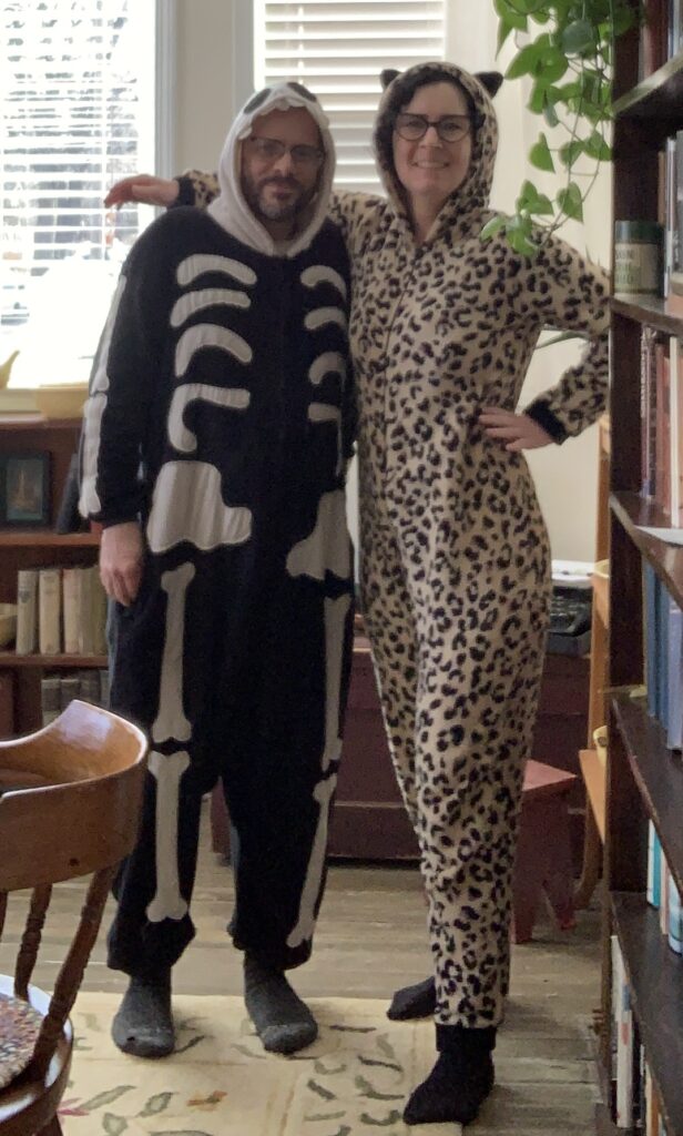 I went to visit my friend Steve in Indianapolis in february. or was it march? I don't remember. I flew up to go to his DJ night. I had a FANTASTIC time! Steve is an excellent host. we ate amazing food. he friend's were super nice. his teenage daughters were super cool (one of them even had a ghost purse like it was the big sister of my small ghost coin case!) each of the DJs that played were totally unique. it was different. when I go to clubs with DJs each DJ is different but still well within the genre. these DJs had totally different styles. it was a great night. then I flew home. of course, steve and I did dress up in our onesies for fun!